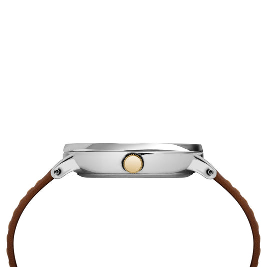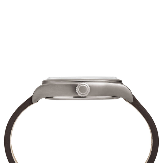 TIMEX Women's Watch with Silver Brass Case and Gray Leather Band