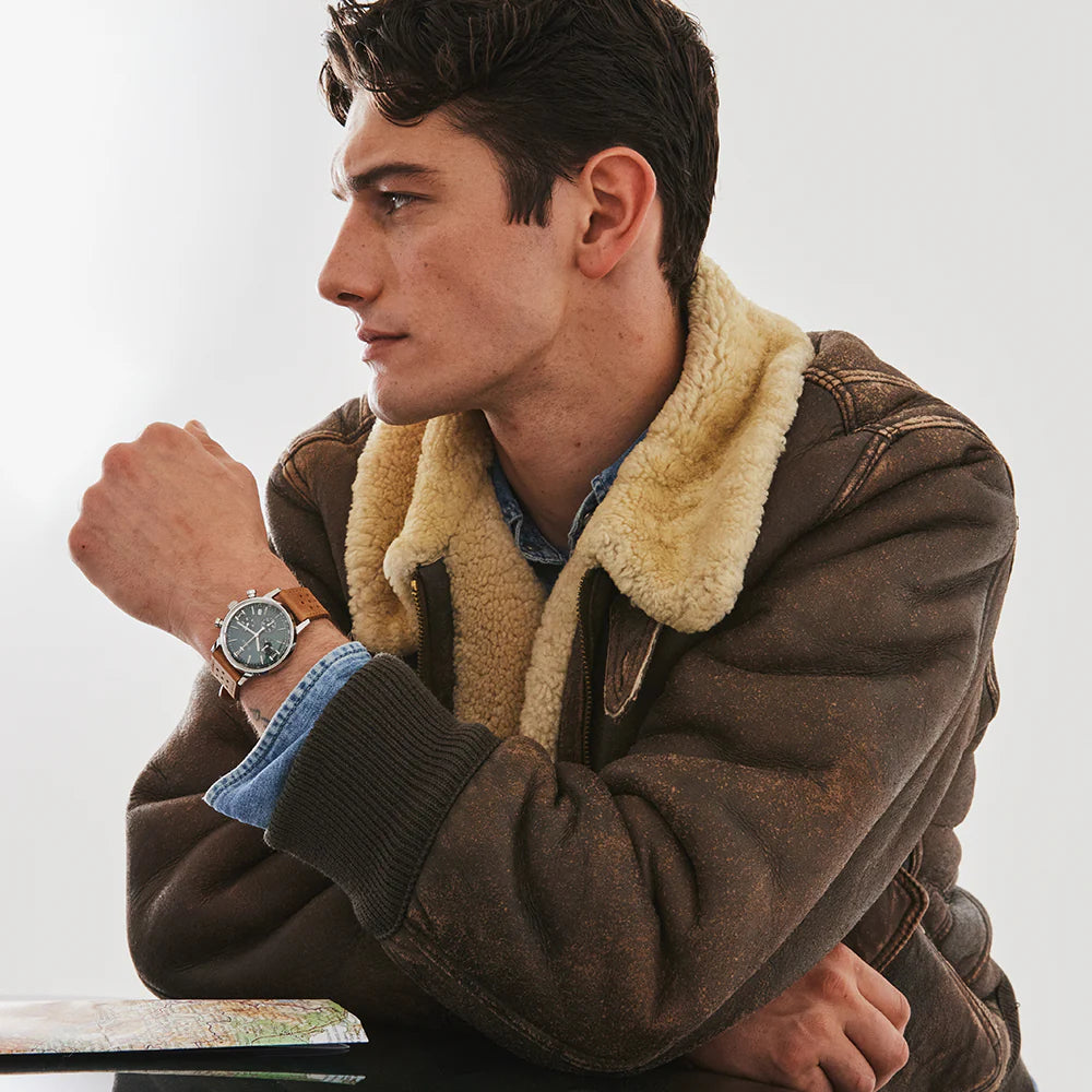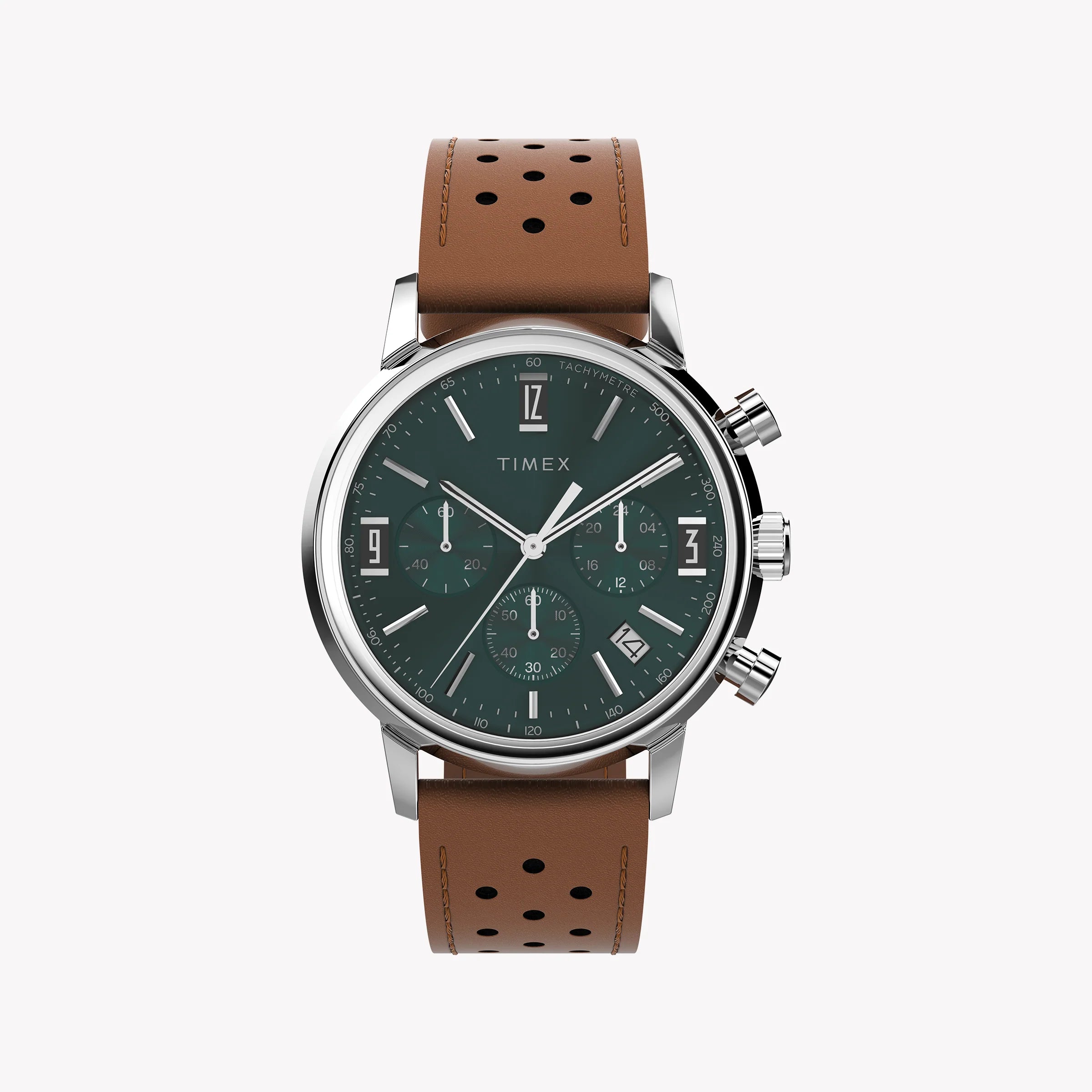 Timex Marlin Quartz Chrono 40mm SST Case Green Dial Caramel Brown leather strap TW2W10100 Men's Watch