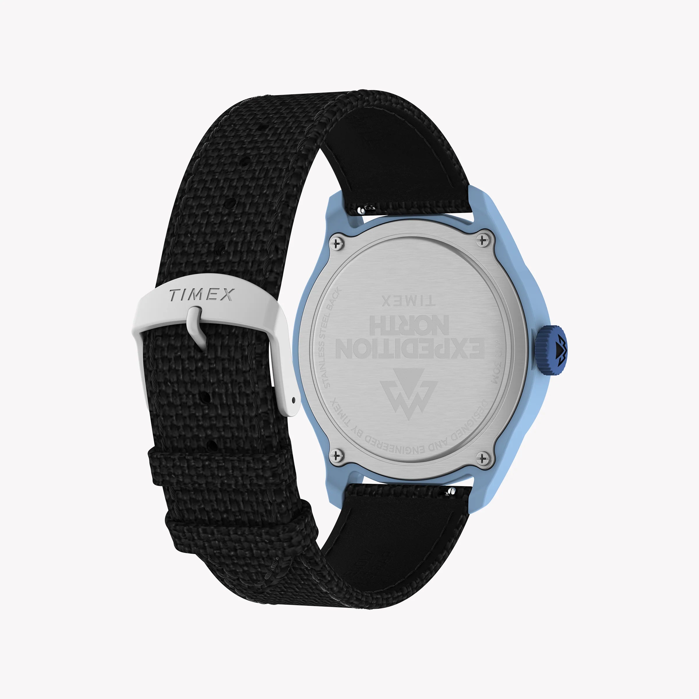 Timex Expedition North Traprock 43mm Blue Case Black Dial Black rPET Fabric Strap TW2W34300 Men's Watch