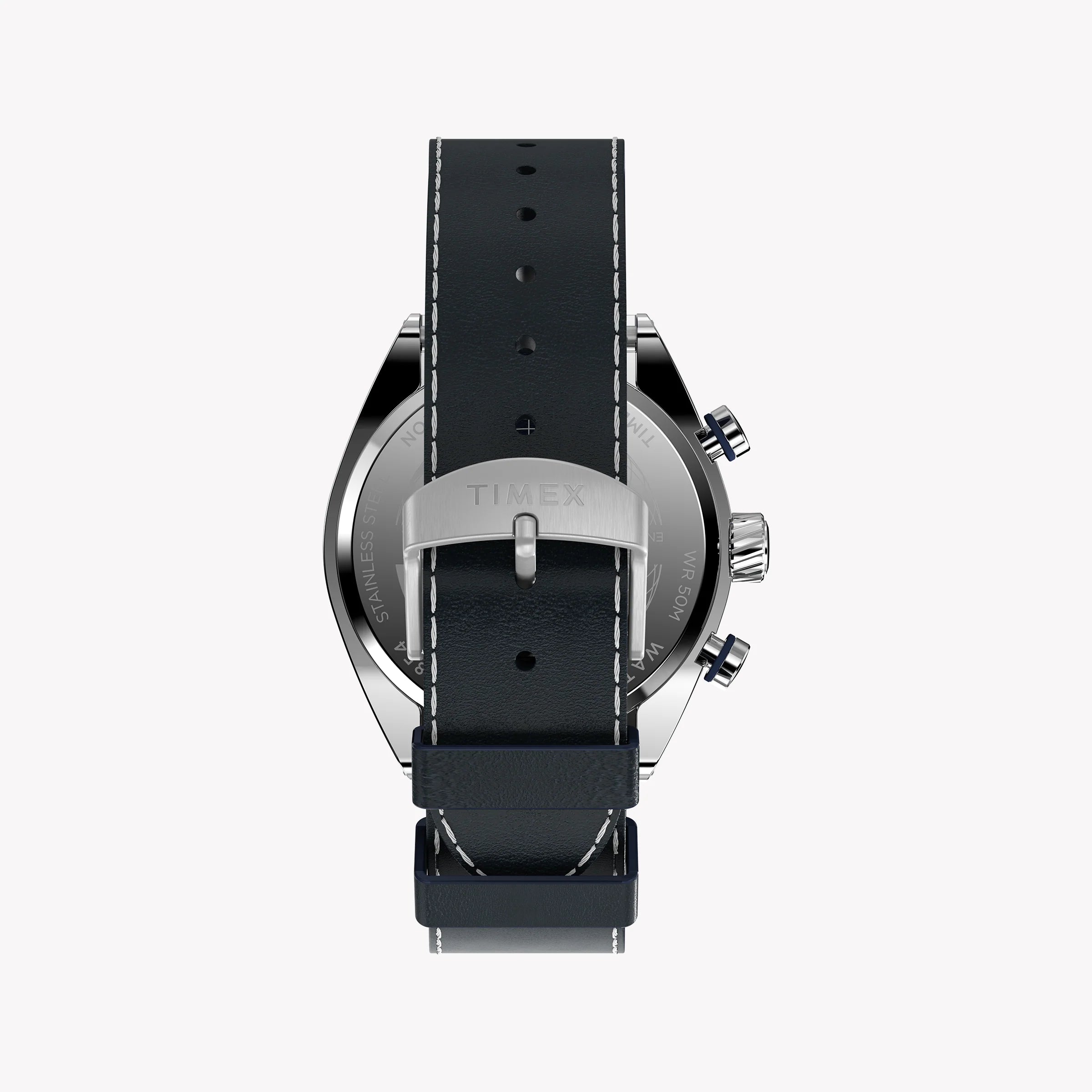 Designed for the modern enthusiast who appreciates both timeless style and exceptional craftsmanship, the Timex Legacy Tonneau Chronograph draws inspiration from the iconic watch designs of the ‘70s. Featuring a bold 42mm barrel-shaped recycled stainless-steel case, this watch seamlessly blends vintage aesthetics with contemporary sophistication. Its multi-layered taupe or blue dial, complete with a date window at 3 o'clock and a tachymeter index, offers both functional precision and visual intrigue. Sunburst brushing on the case surface and intricate detailing on the crown and pushers elevate its polished look, making it a versatile statement piece. Brightly colored hands and a perforated leather strap—available in classic black or vibrant blue—add a sporty edge, perfect for any occasion.
