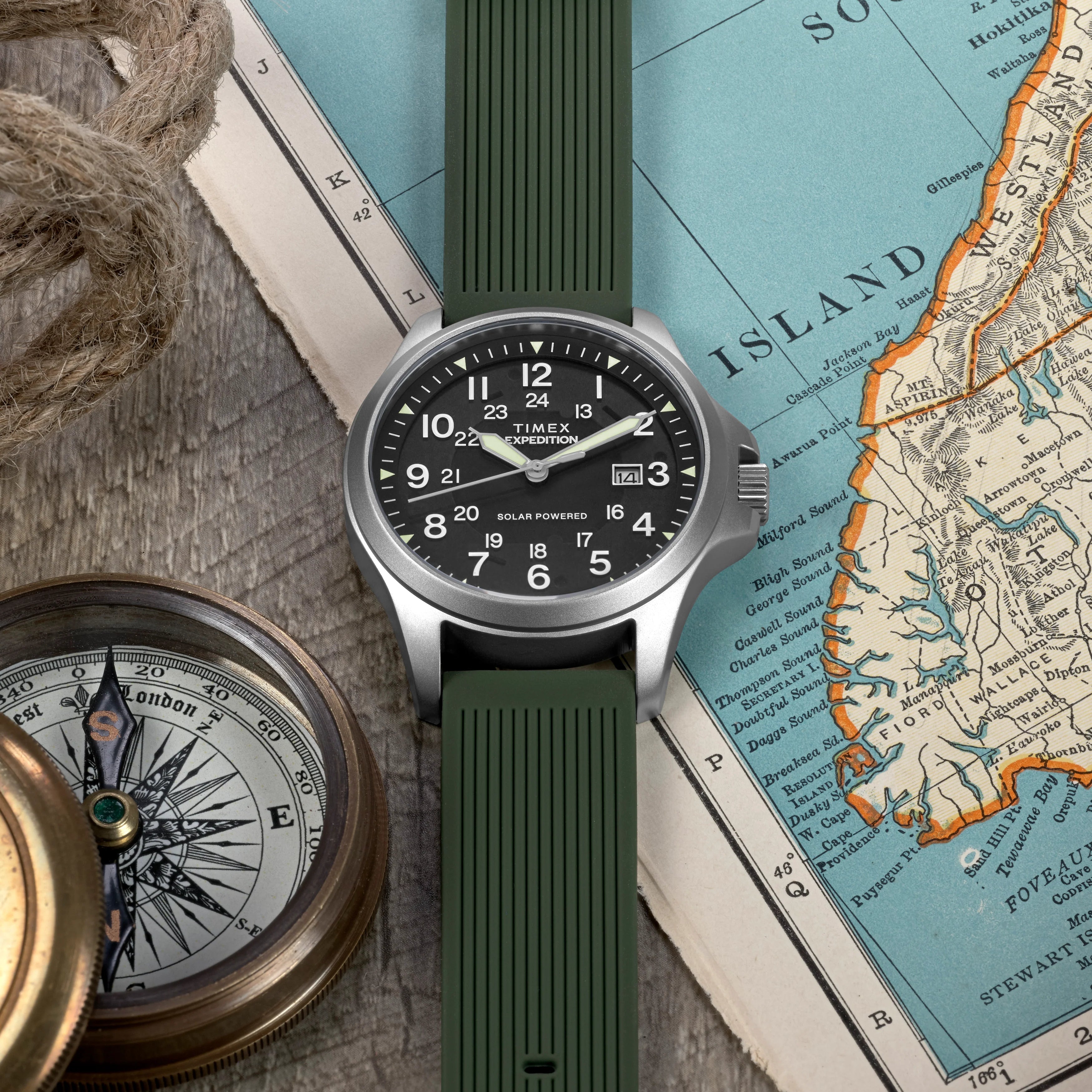 Expedition Field Post Solar 41mm SST Black Dial Green Silicone Strap | TW2Y31600