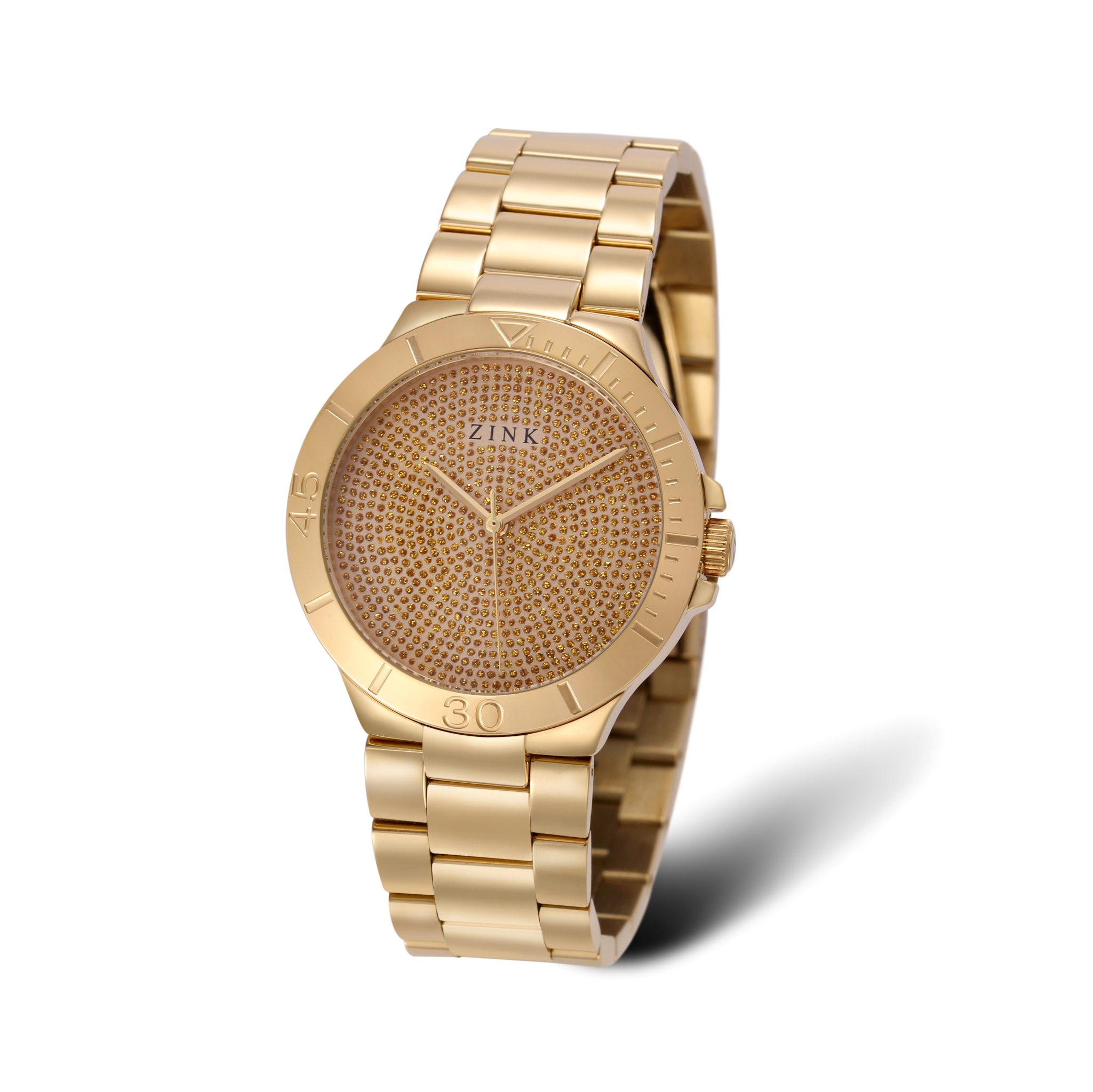 A watch is more than a timekeeper; it is a symbol of elegance encased in a showpiece with extreme craftsmanship. ZINK crafted the designs of Women's watches into contemporary timepieces dedicated to detail. This ZINK Watch is made for modern Women who are looking for a timepiece that can be used on every occasion. With its Gold premium Stainless Steel band and its Gold dial, this watch is both fashionable and functional. Featuring a bold Round Stainless Steel case with a diameter of 36 mm, this elegant timepiece is the ideal choice for your everyday outfits as it has a straightforward design with an eye-catching style.