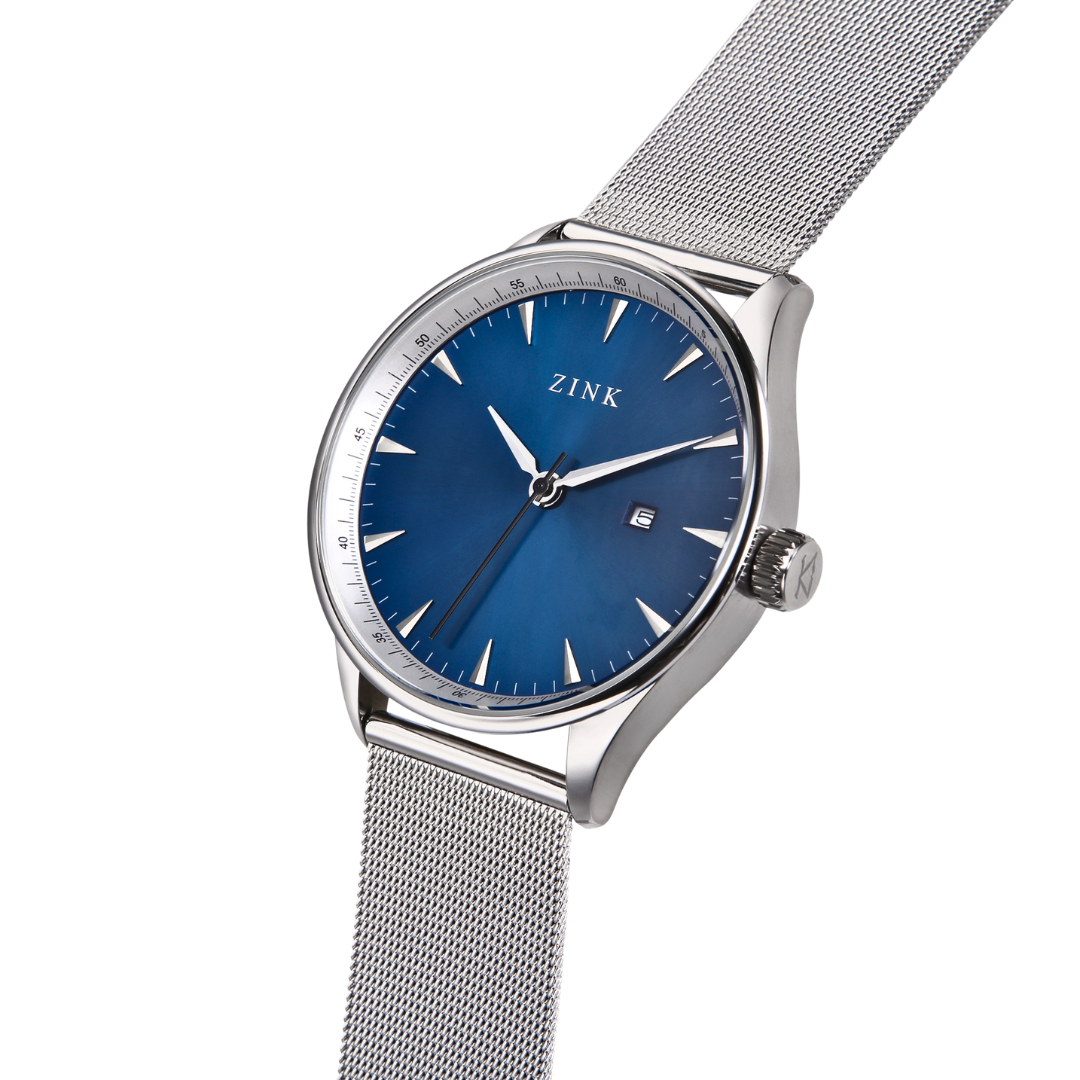 A watch is more than a timekeeper; it is a symbol of elegance encased in a showpiece with extreme craftsmanship. ZINK crafted the designs of Men's watches into contemporary timepieces dedicated to detail. This ZINK Watch is made for modern Men who are looking for a timepiece that can be used on every occasion. With its Silver premium Stainless Steel band and its Blue dial, this watch is both fashionable and functional. Featuring a bold Round Stainless Steel case with a diameter of 44 mm, this elegant timepiece is the ideal choice for your everyday outfits as it has a straightforward design with an eye-catching style.
